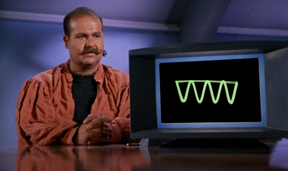 Turns out it isn’t, because after he’s made to take a lie detector test (something all Enterprise guests should probably have to take before boarding, based on previous episodes) it turns out his name’s actually Harry Mudd.